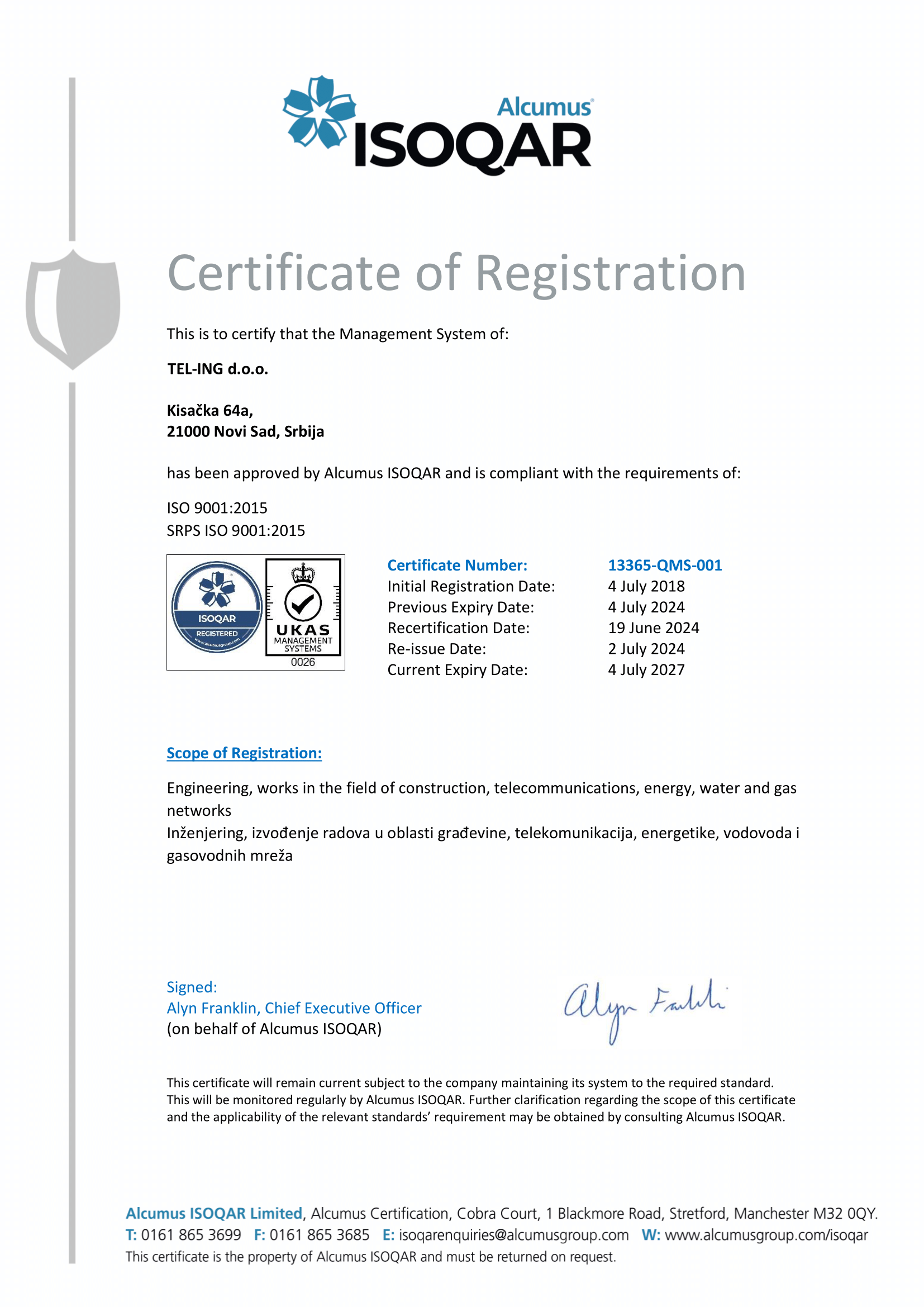 Tel-ing d.o.o. was founded in 2007 in Novi Sad as a company specialized in the design and construction of infrastructure systems. Over the years, through continuous improvement and expansion of capacity, it has become a reliable partner in the telecommunications and power industry, providing quality and innovative solutions.